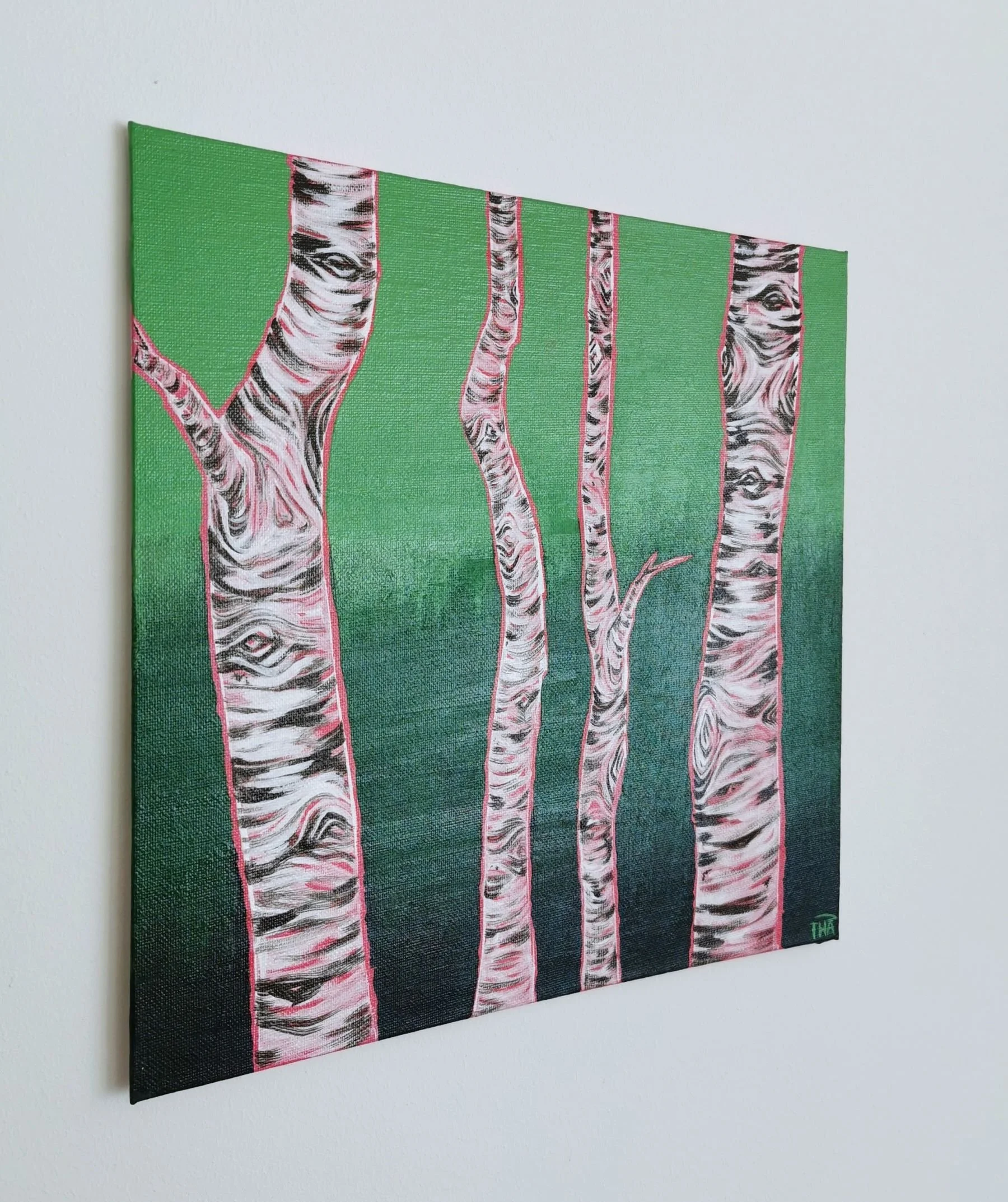 “Skogen ser” Akrylmaleri på lerretsplate; 30 cm x 30 cm. Produsert september, 2023. Pris: 1.200,-Kjøp maleriet
